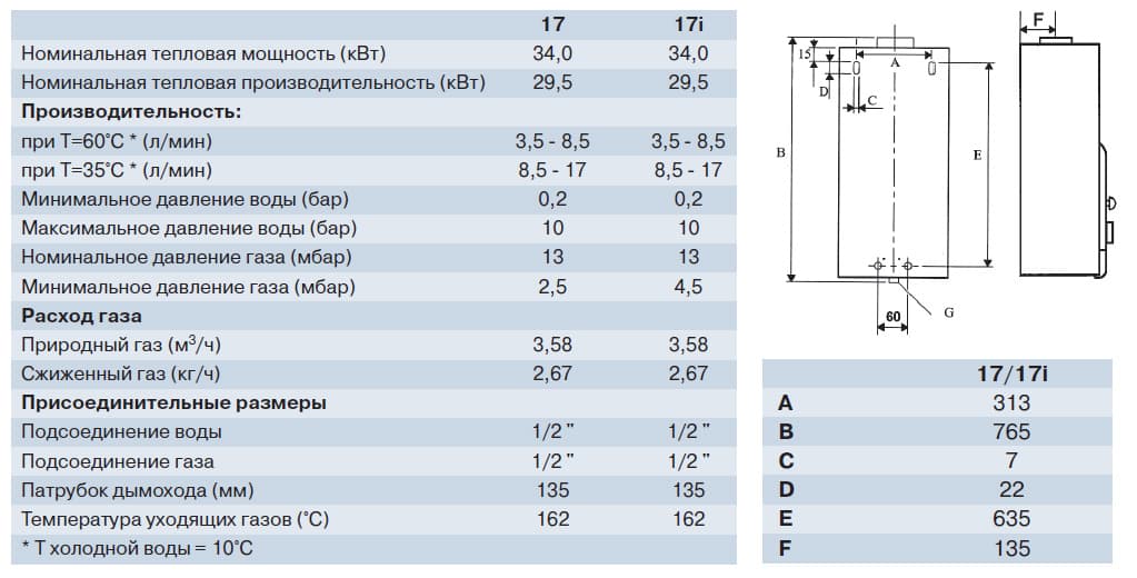 Проточная газовая колонка Beretta Idrabagno 17 служит для нагрева воды. Его следует присоединить к сети водоснабжения, параметры которой отвечают характеристике и мощности изделия.