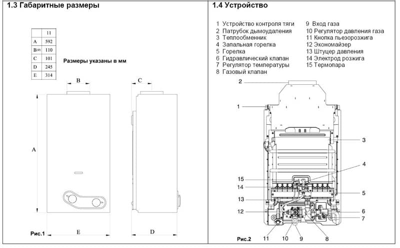 - Водонагреватель адаптирован к перепадам давления газа в сети (на всех моделях установлен стабилизатор давления газа)