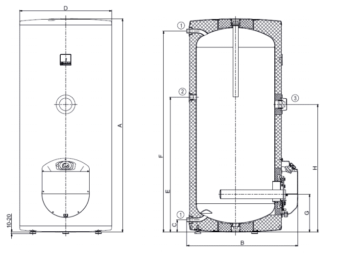 - Внутренняя поверхность бака покрыта высококачественной эмалью без содержания никеля, что в сочетании с защитным магниевым анодом обеспечивает долговечность работы водонагревателя.